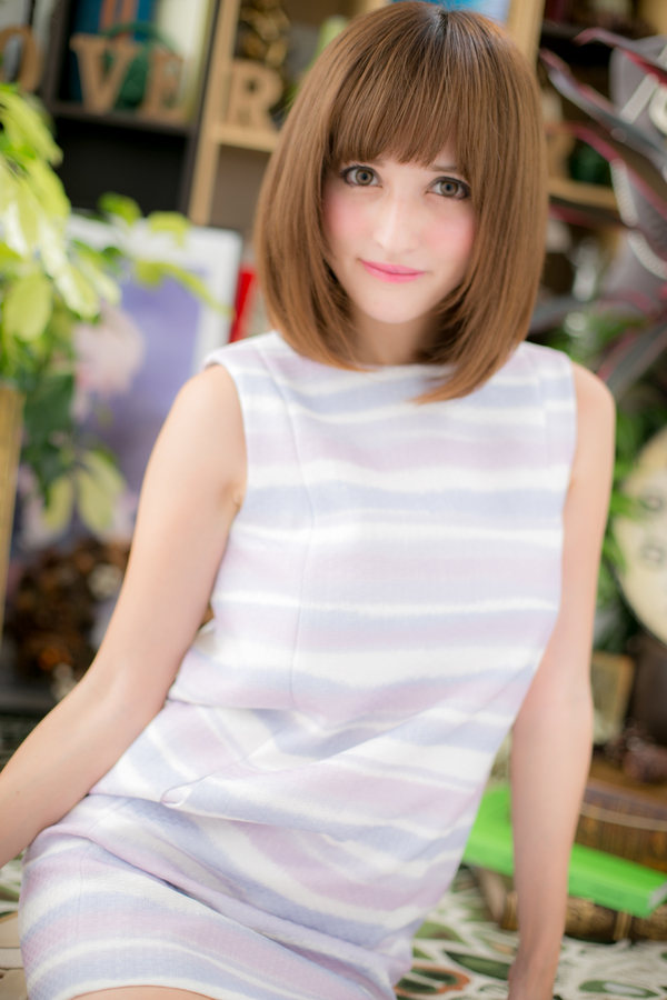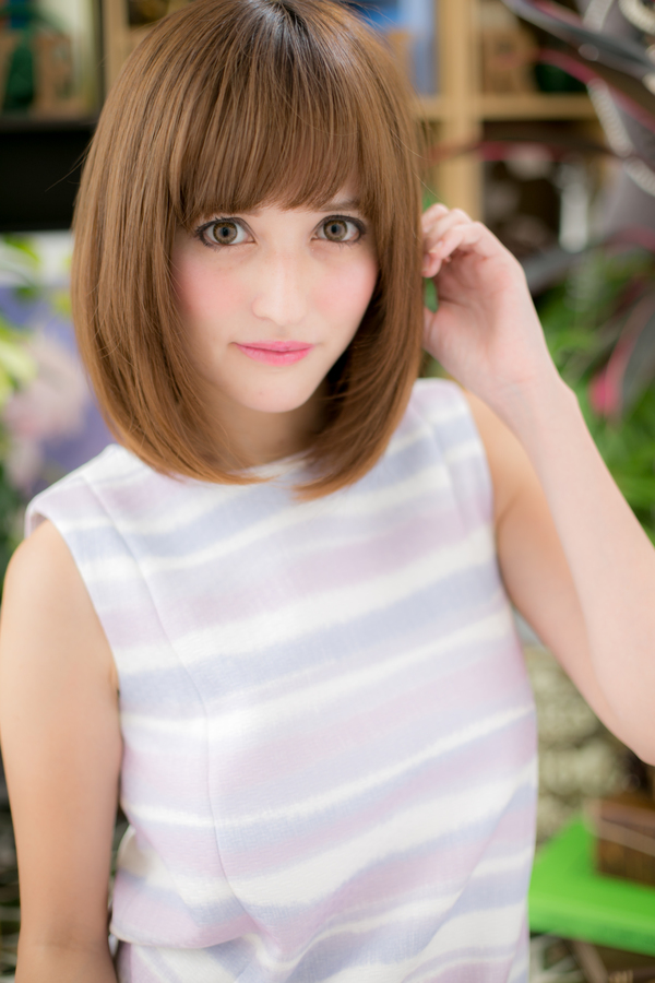 目力を強調させる印象的な目の上ギリギリラインの前髪と、ストレートでデキる女性の演出も☆重めスタイルも明るいベージュカラーでカジュアルさもプラスできます。