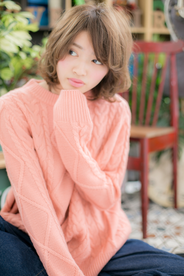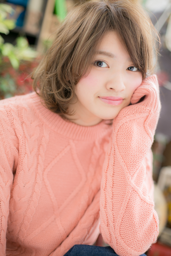 似合わせカット&顔周りの髪をスイングさせて、頬骨やエラのハリをカバー。サイドに流した長めのバングで目力UPし、大人っぽさと可愛さある雰囲気に。