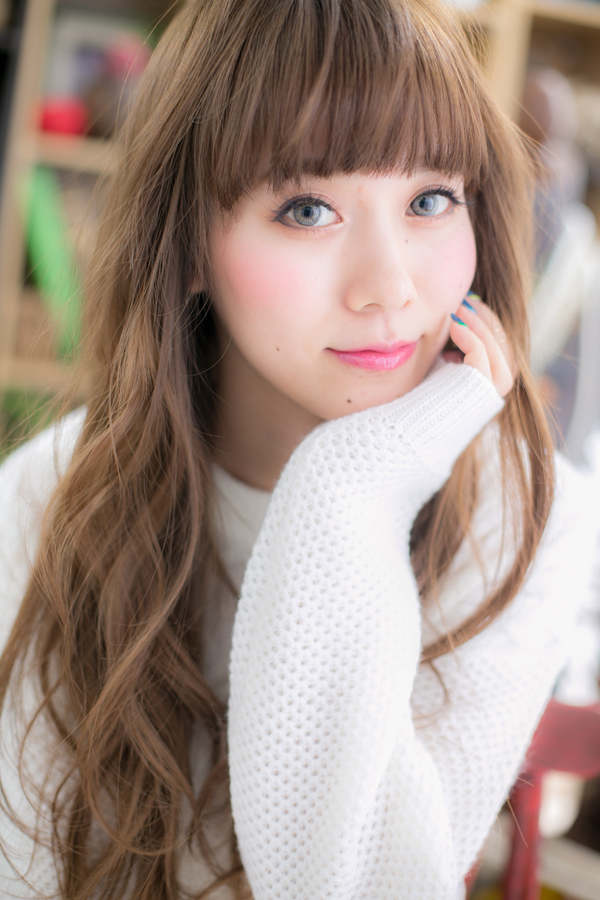 ワックスをもみこんで手グシでブロー。毛先はさくようにほぐしながら整えて。前髪は内巻きにブローして、眉をチラ見せさせてもカワイイ。