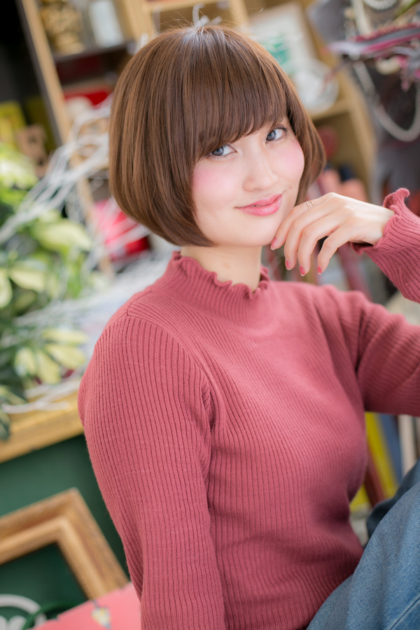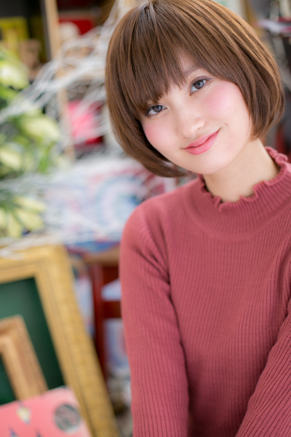 丸みのあるひし形のシルエットはショート初心者にもオススメのボブスタイルです。フェイスラインもしっかりカバーできるので、ほっそり小顔にも見せます☆