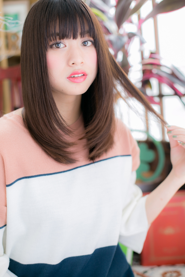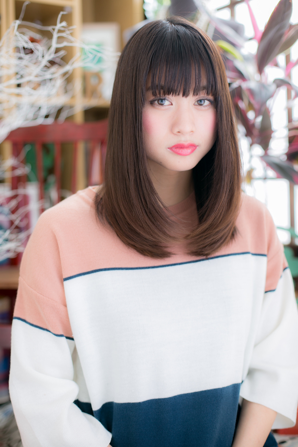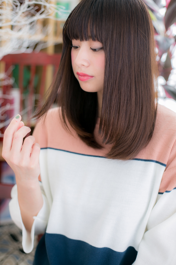 ダークトーンカラーが印象的なストレートロングはタイトなシルエットで重みをカバー。前髪のラインを整えてオリエンタルな雰囲気にも見えます☆