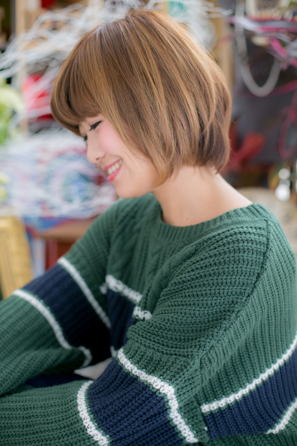 定番のナチュラルなボブスタイルに、ハイライト等のアクセントカラーでぐっとカジュアルガーリーに。プラス、ナチュラルなストレートをかけることで日々のセットも楽々☆