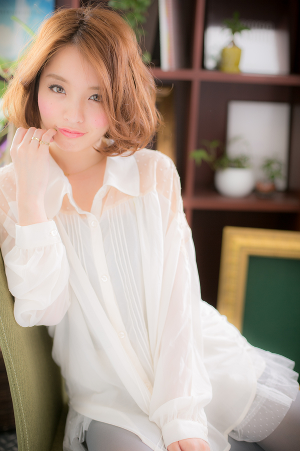 毛先巻きのパーマで大人っぽい表情を引き出してくれる,ボリュームオンの華やいだミディアムヘアー。前下がりやセンターパート,耳かけ,かきあげバングで女らしさも☆ルーズにくせ毛風なカールや,ほつれウェーブでグラマラスな質感などご相談ください♪