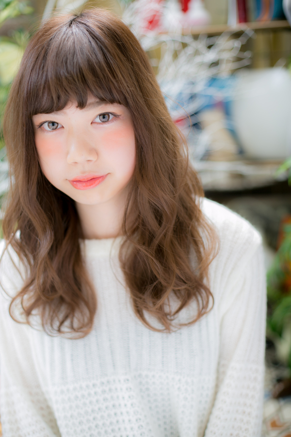 縦ラインのウェーブカールのロングスタイルでこなれたラフ感漂わせるイメージに。デジタルパーマをかければ、忙しい朝もスタイリングが楽々になります。(メイク担当:北浦和店 棟方)