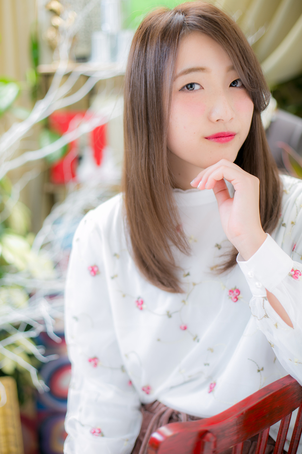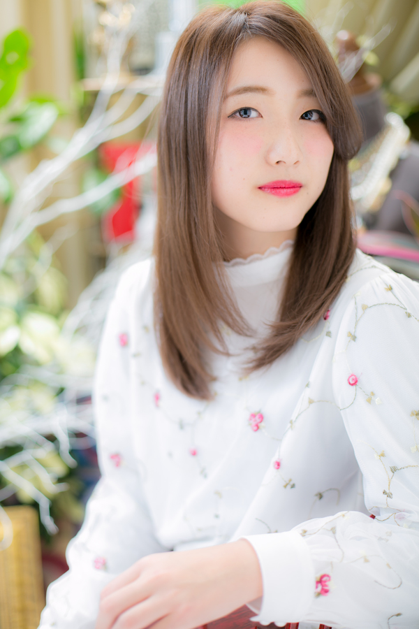 全体をストレートにして部分的に少し浮かせました。髪を少し顔にかぶせて小顔効果UP!ニュアンスストレートでナチュラルでタイトな印象に。クセの強い方は縮毛矯正がオススメです。(メイク担当:北浦和店 近藤)