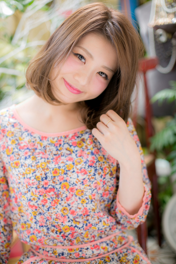 ワンレンボブベースの重めスタイル。あごラインに沿った丸みあるフォルムでガーリーに仕上げて。毛先のエアリーな内巻きワンカールで軽さと動きを出して、ノーバングで顔周りをスッキリ見せれば、好感度大の愛され顔に☆