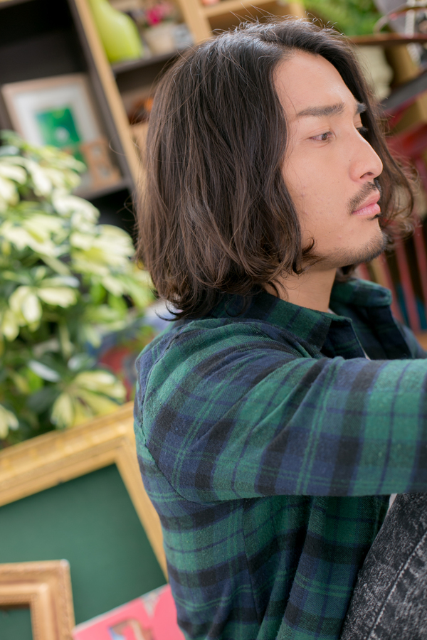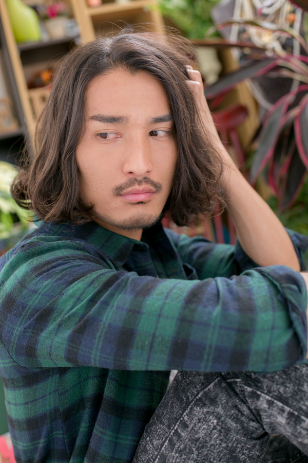 セットしやすいニュアンスパーマが、オールバックやざっくりまとめてしばるだけのアップスタイルを大人カッコよく仕上げます。スタイリング剤でボリューム感も調節できます。