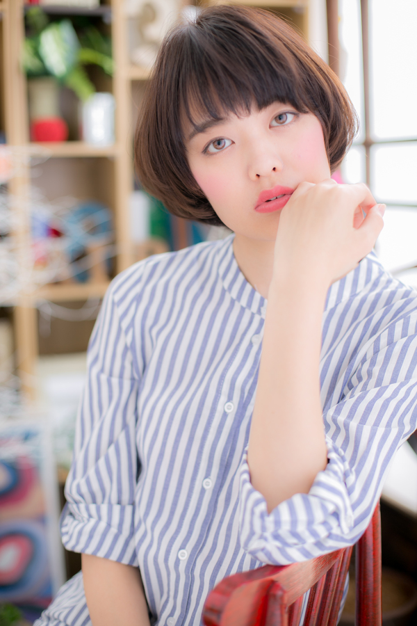 なめらかな曲線を描くラウンドフォルムがピュアかわいい♪耳横に丸い膨らみを持たせることで小顔に見えるのもうれしい。可愛らしさのあるマッシュボブスタイルです。