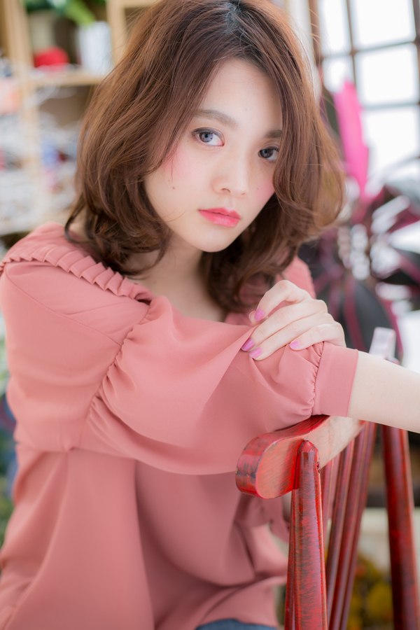 しだれ落ちる前髪で表情をチラ見せするのが小粋なふわミディ。鎖骨ラインのくびれカールでぐっと色っぽく。耳横のワンカールで作るダイアモンドフォルムで頭や顔の輪郭を綺麗に見せます。ラフにかきあげてもカッコイイ。