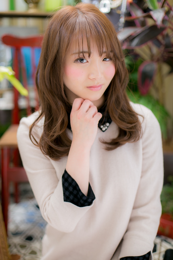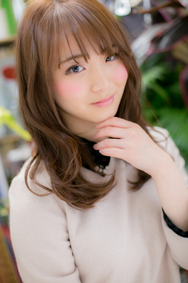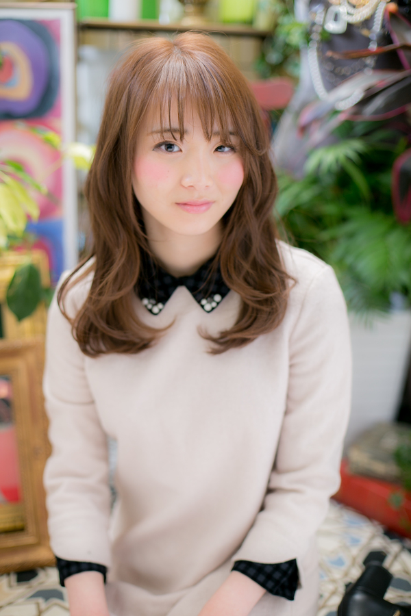 ベースはワンカールです。表面に少しだけ束でとり、ウェーブを出してゆるい感じに仕上げました。ほつれたような緩やかウェーブとフリンジバングで旬顔に。フェミニンでやわらかい雰囲気になります。