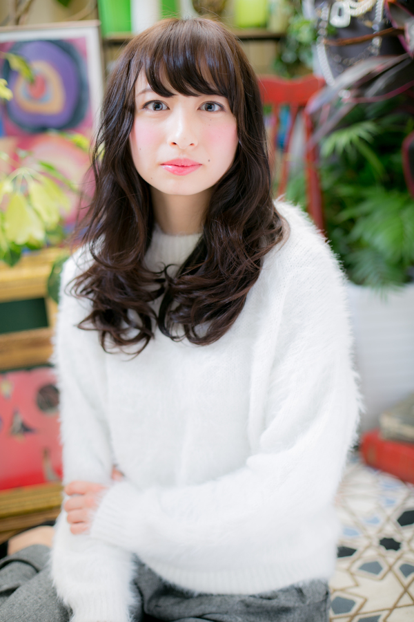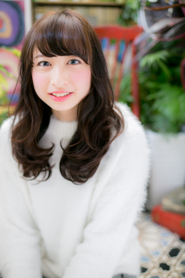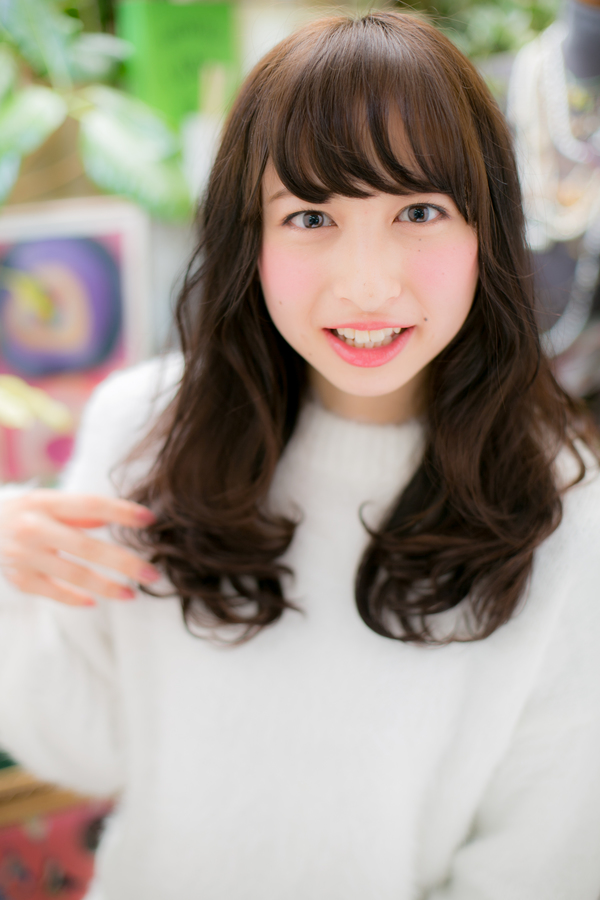 ベースカットでのレイヤー&毛先のカールで、トップのふんわり感が出るようなスタイル。前髪パーマもプラスして、毎日のお手入れも楽になります。