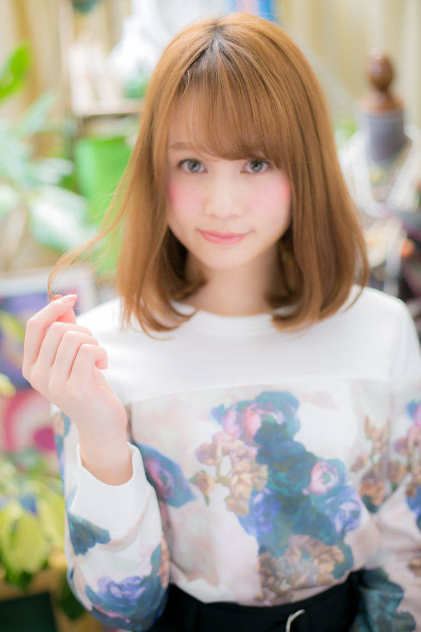 明るめのカラーなので艶感をキープするために、アウトバストリートメントでケアをしてドライ。毛先はまとめて内巻きブローで仕上げます。ボリュームを抑えたい方はストレートアイロンでさらっとセットでタイトなシルエットに♪