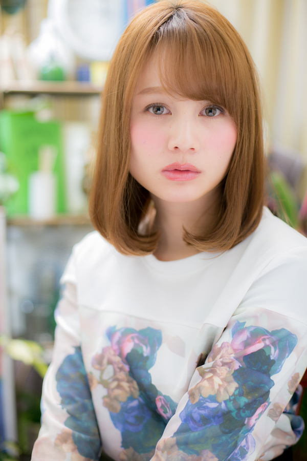 毛先のやわらかなワンカールでやわらかな動きをプラス。優しく軽やかな動きで、印象的なイエローベースのハイトーンカラーでもナチュラルな印象に。