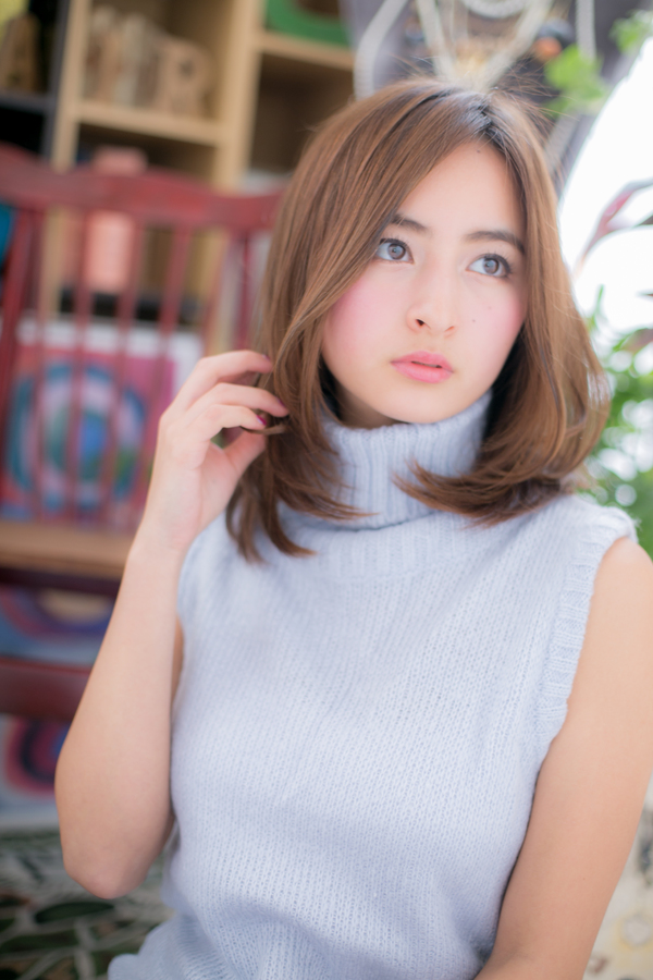 ツヤ感重視のワンカールストレート。ノーバングで知的な印象。透明感あるカラーでフェミニンな清潔感をプラスして、ピュアでイノセントな雰囲気に。ベージュカラーやメルトカラーで旬顔に。(メイク担当:北浦和店 棟方)