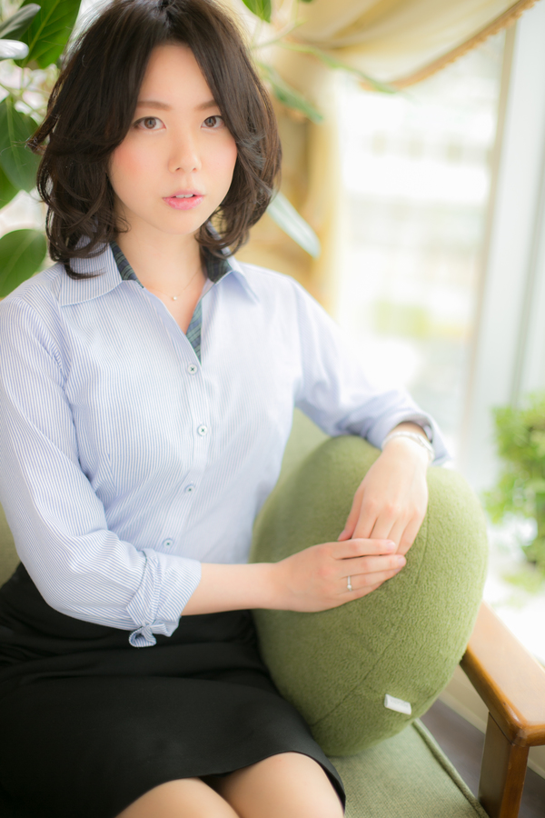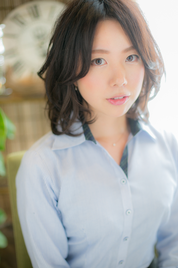 毛先にパーマをかけているので、根元→毛先でドライ後、WAXを毛先にもみこみスタイリング☆大人かわいい厚めバングやふわミディも人気です。