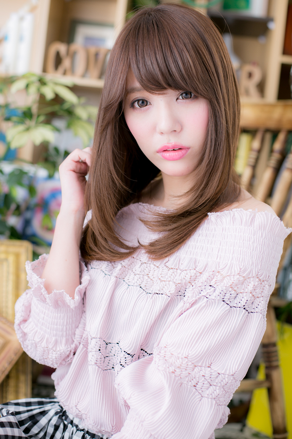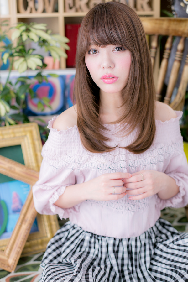 透明感あるツヤカラーがポイント。洗い流さないトリートメントやオイルで潤いキープ!重厚感あるロングスタイルも軽やかでしっとりまとまります。うぶバングでモード風にしたり、姫カットで個性的なラブ可愛い印象にしても◎
