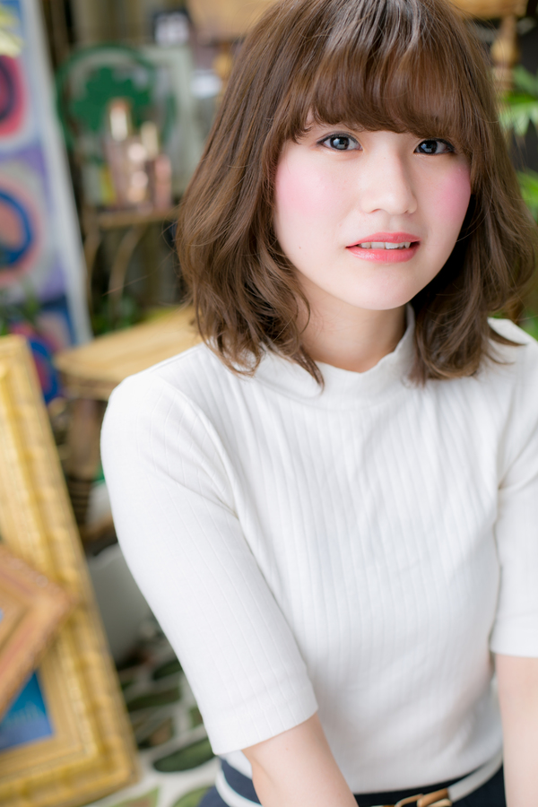 誰からも好印象な、ゆるふわミディのパーマスタイル。クルっと巻いた前髪が可愛らしさを演出。思わず触れたくなるようなふわふわ感で差をつけて。旬スタイルをご提案します。ヘアスタイルのお悩みはご相談ください。