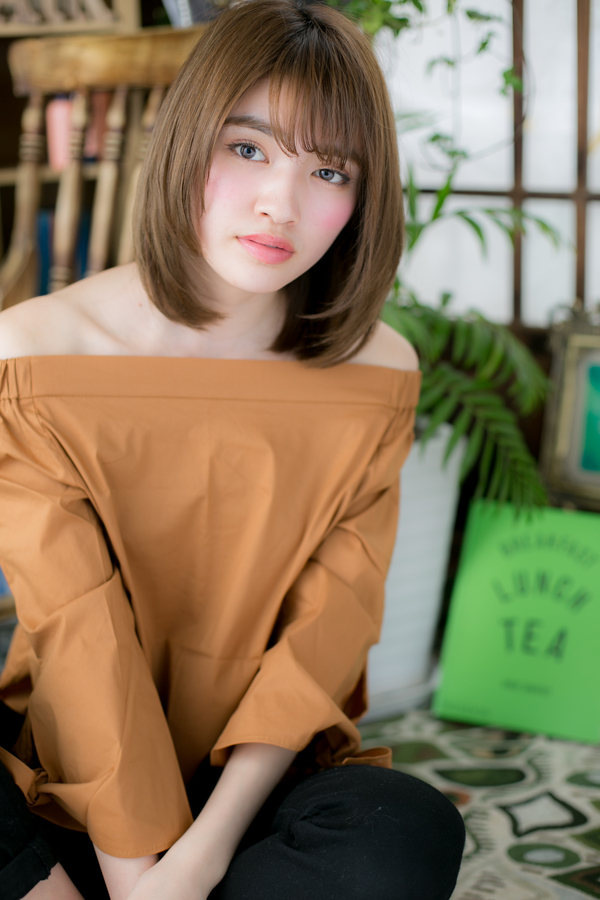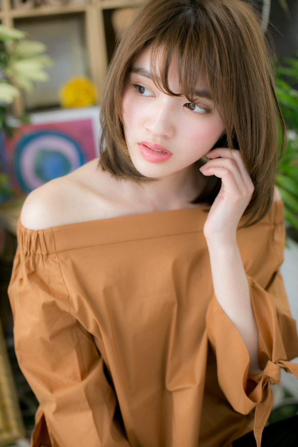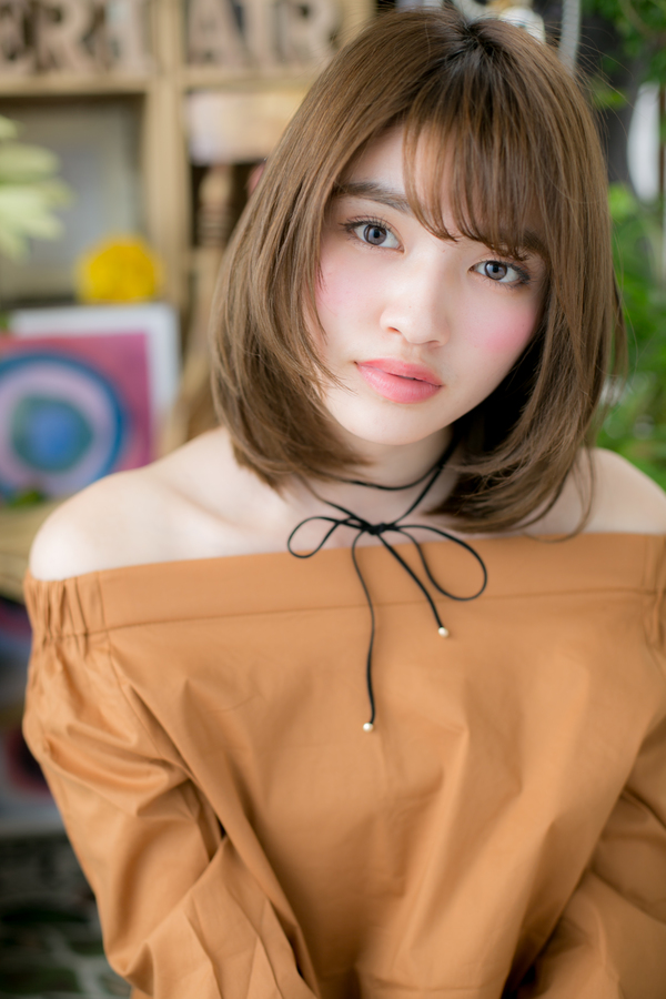 フェイスラインを包み込むレイヤーの毛流れで、顔周りを華やかに彩りつつ、輪郭をカバーして小顔見せ。透け感ある斜めバングでやわらかな印象にすれば、しっとりまとまりつつ、動きのある軽やかで可憐なモテミディに♪