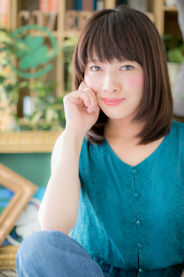 サイドのレイヤーでフェイスラインをカバーしているので、小顔対策もバッチリ!耳かけも上品で大人かわいい。ワイドバングでカジュアルな印象にしても、斜めバングでフェミニンにしても旬顔に。目力UPを狙って♪ヒアルロン酸カラーは白髪にも対応可。