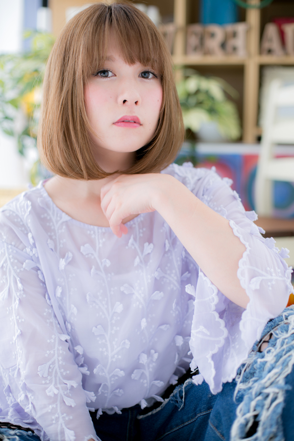 顔周りを包み込む前下がりラインで輪郭をカバーして小顔見せ。厚めバング&斜めバングで目元を強調して美人度UP!ナチュラルミディは、グラデーションカラーで表情豊かに個性的ガーリー☆(メイク担当:川口店 成田)