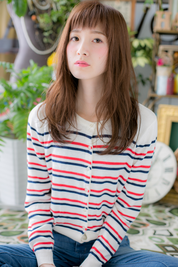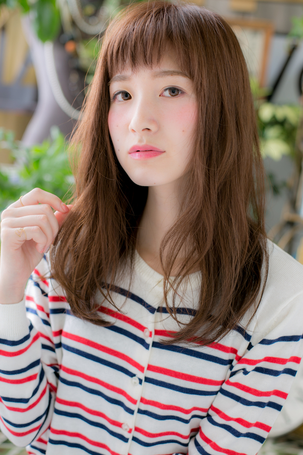 ワンカールベースの小顔ロングは、くせ毛風カールで抜け感を演出。厚めバングや斜めバングで大人かわいい雰囲気に。耳かけもGOOD!ふわミディやボブからの伸ばしかけにも◎(メイク担当:川口店 成田)