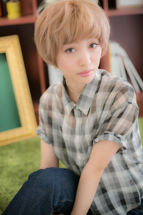 ふんわりしたカールがとってもガーリーなショートスタイル。ハイトーンカラーが,髪を柔らかく見せ,スィートに。ゆるーいカールなのでふんわりくせ毛風にスタイリングでOK!直毛でぺたっとする方やボリュームを出したい方にもオススメです☆