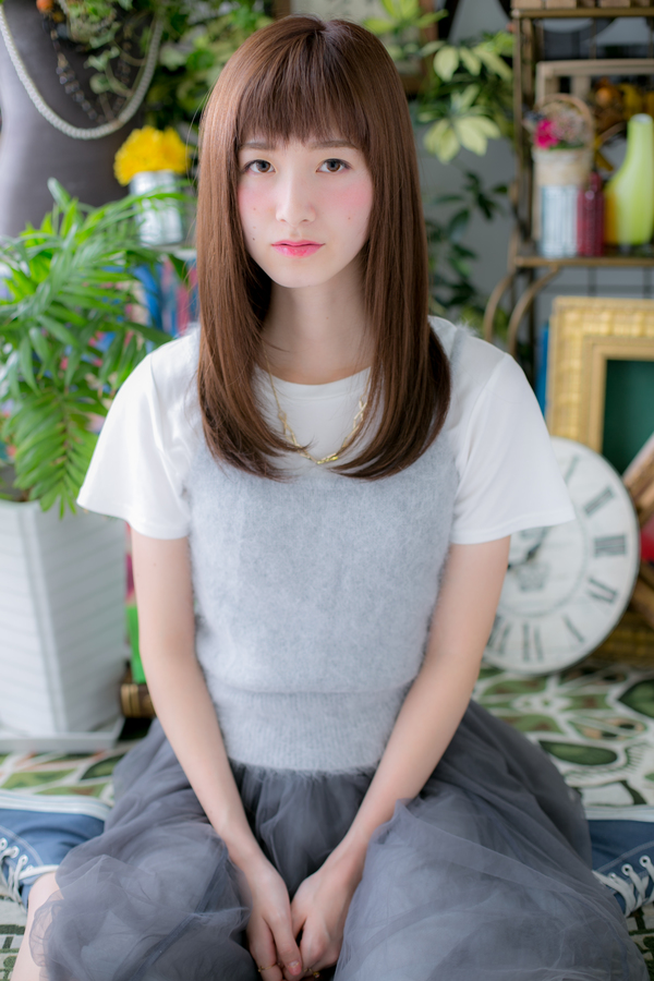 全体的にタイトにおさえて小顔効果UPさせた美髪ストレートヘアのスタイルです。透け感ある人気のカラーで斜めバングや厚めバングで目力強調で大人女子のファションにおすすめ!前下がりでクールにしたり、くせ毛風カールでフェミニンにしてヘアアレンジしやすい大人かわいいスタイル♪(メイク担当:川口店 成田)