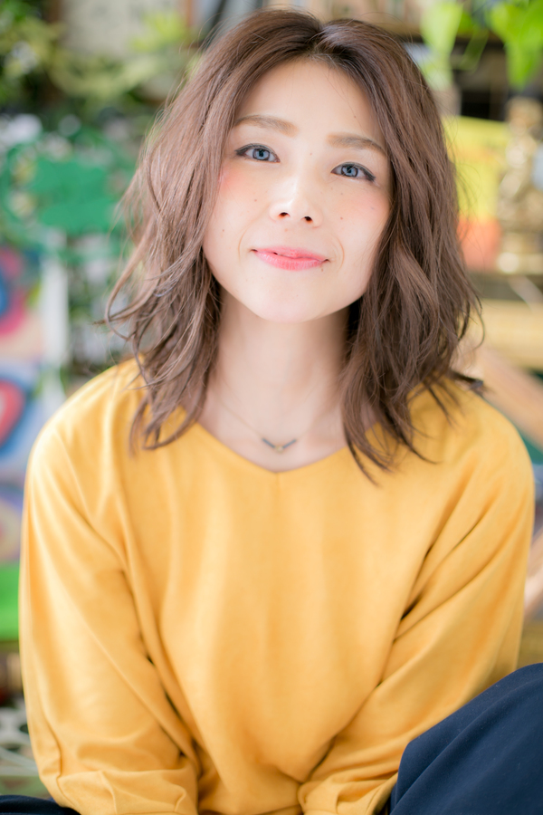 センターパート&くせ毛風カールで大人の余裕を醸すアンニュイな雰囲気のふわミディ。前下がりで小顔対策もOK。斜めバングや厚めバングで目力UPしたり、大人かわいい耳かけもでヘアアレンジ◎ミディアムヘアを際立たせるグラデーションで大人女子のコーデを完成!30代・40代にもおすすめ(メイク担当:北浦和店 近藤)