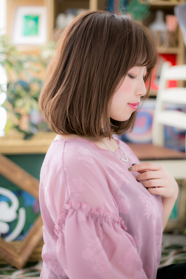 前下がりボブやナチュラルボブ、フェミニンボブや大人ボブからの伸ばしかけにおすすめ。センターパートや前下がりでクラシカル&大人クールにしたり、アシンメトリーなヘアアレンジでこなれ感を出しても大人かわいい。ヒアルロン酸カラーは白髪にも対応可。