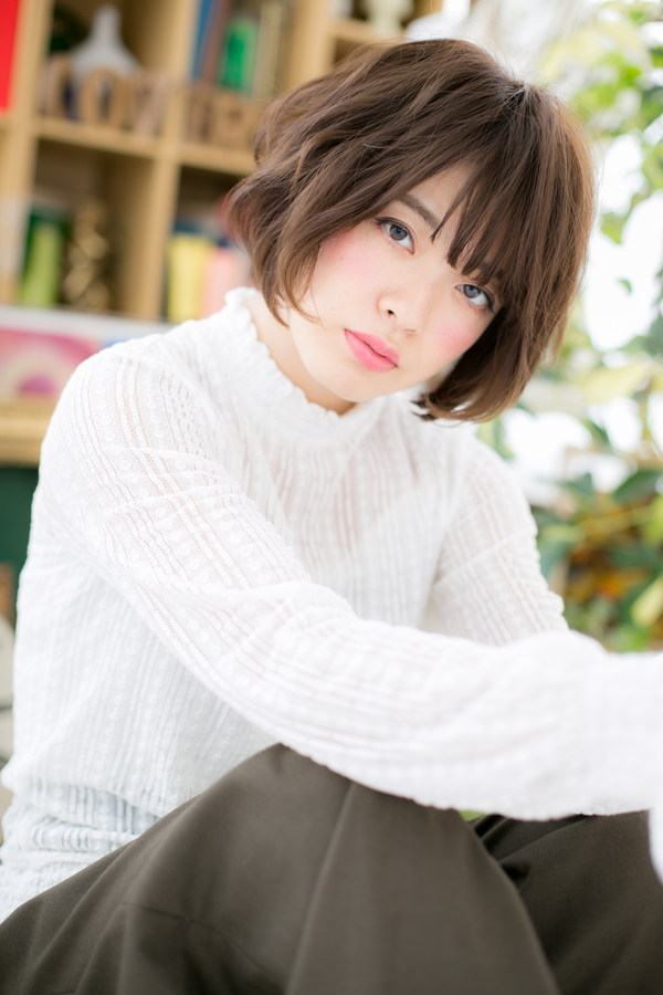 斜めバングや厚めバングで目力強調したり、センターパートや前下がりで輪郭カバーして小顔見せもGOOD。伸ばしかけにはふわミディやエアリーなセミディスタイルもトレンド。グラデーションカラーも個性的でトレンド。ヒアルロン酸カラーは白髪にも対応可。