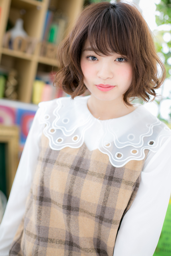 斜めバング&くせ毛風パーマが大人かわいいフェミニンボブのヘアスタイル!。ナチュラルボブや大人ボブ、前下がりボブからのヘアアレンジにピッタリ。暗髪で旬顔で大人女子のファション度UP。ミディアムヘアを際立たせるグラデーションでトリートメントしたようなカラーリングで髪の毛の悩みも解決!人気のカラーやピンク系のカラーも◎30代・40にもおすすめ☆(メイク担当:北浦和店 棟方)