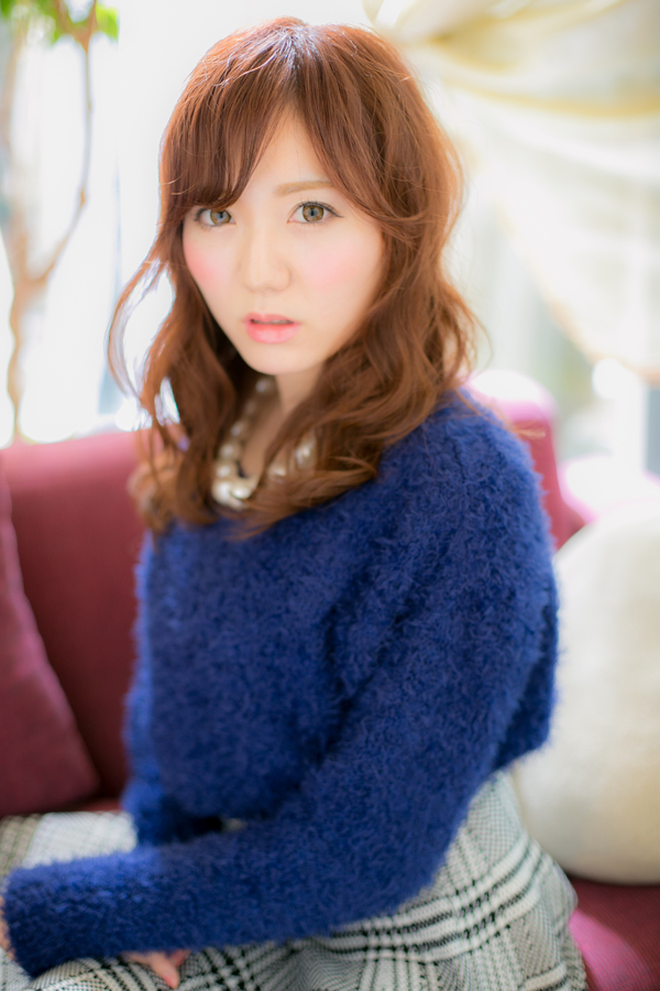 程よいボリュームのエアリーカールと明るめハッピーカラーで、モテオーラ全開の大人グラマラススタイルに☆顔周りのレイヤーと斜めバングで小顔効果も。厚めバングや耳かけもGOOD。簡単ヘアアレンジでパーティや二次会でもOK。無造作なくせ毛風スタイルも◎