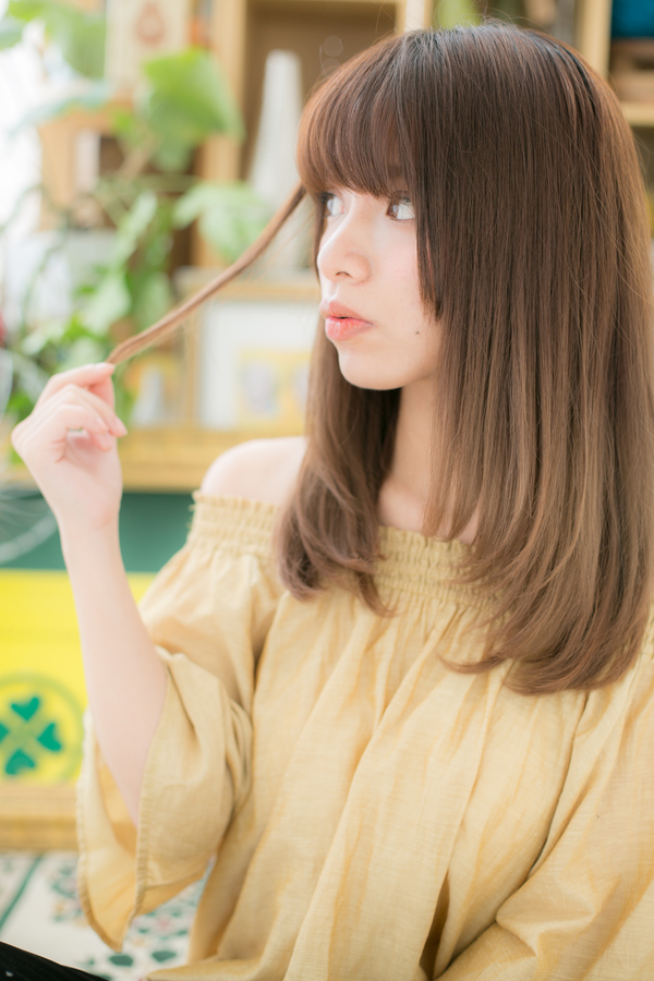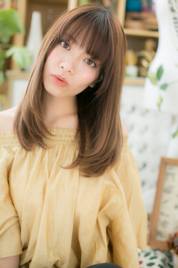 しっとりまとまるワンカールストレートのヘアスタイル。厚めバングで目力強調し、髪の色はツヤ感あるベージュカラーで顔周りを明るくしたり、暗めのグラデーションやベージュで髪の毛の悩みも解決!好感度大の美人顔ロングはオフィスでもデートでもウケバッチリです大人女子のコーデを完成。斜めバングや耳かけも大人かわいい♪