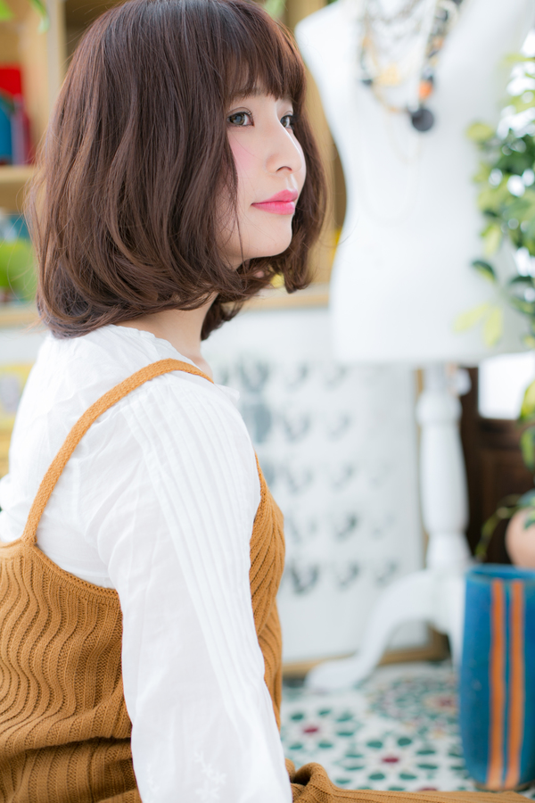 厚めバングや斜めバングで目力強調して大人女子のファッション度UP!耳かけしたりくせ毛風カールのフェミニンボブでラブガーリーな愛されヘアスタイルに。前下がりボブやナチュラルボブ、大人ボブからのヘアアレンジにオススメ。ミディアムヘアを際立たせるグラデーションで髪の毛の悩みも解決!30代・40代にも◎(メイク担当:川口店 成田)