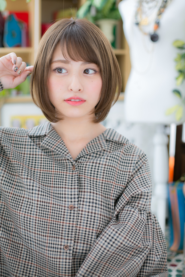 ナチュラル可愛い♪小顔サラツヤ前下がりボブ