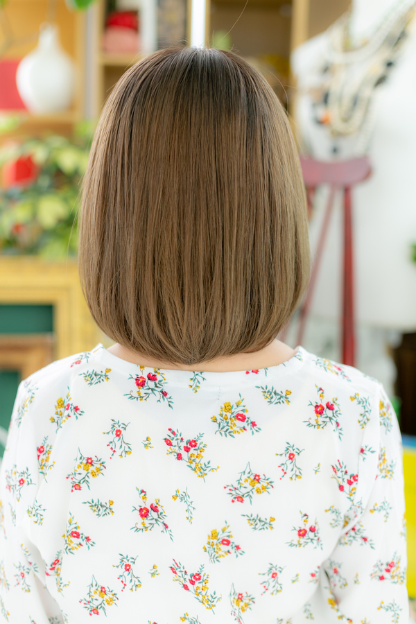 斜めバングや厚めバング,ジグザグバングで目力UP/前下がりで小顔に見せます/ナチュラルボブやフェミニンボブ,大人ボブや前下がりボブからのイメチェンにGOOD/耳かけしても大人かわいい/20代/30代/40代/50代