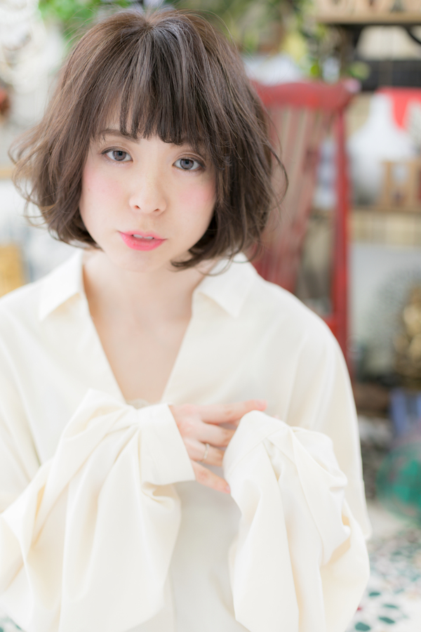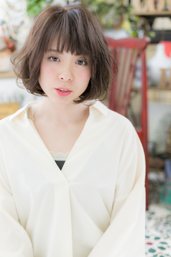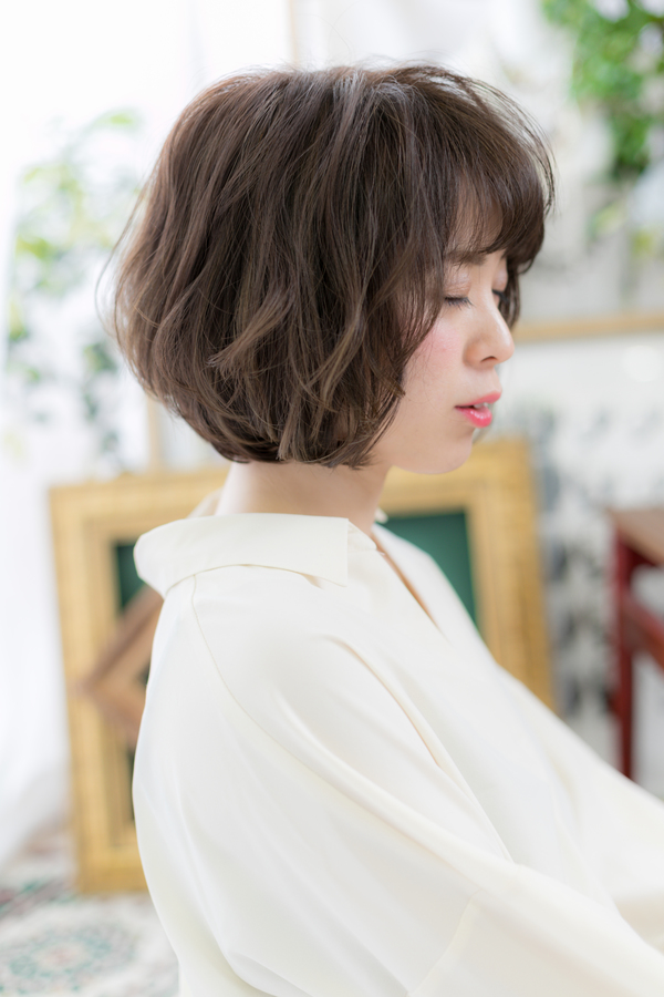 ひし形シルエットのショートボブに計算されたCカールとSカールをプラスした髪型。デジタルパーマを入れれば再現性UP。トリートメントしたようなカラーリングで髪の毛の悩みも解決!斜めバングや厚めバングで目力強調で大人女子のファッションどUP!30代・40代にも◎(メイク担当:北浦和店 棟方)