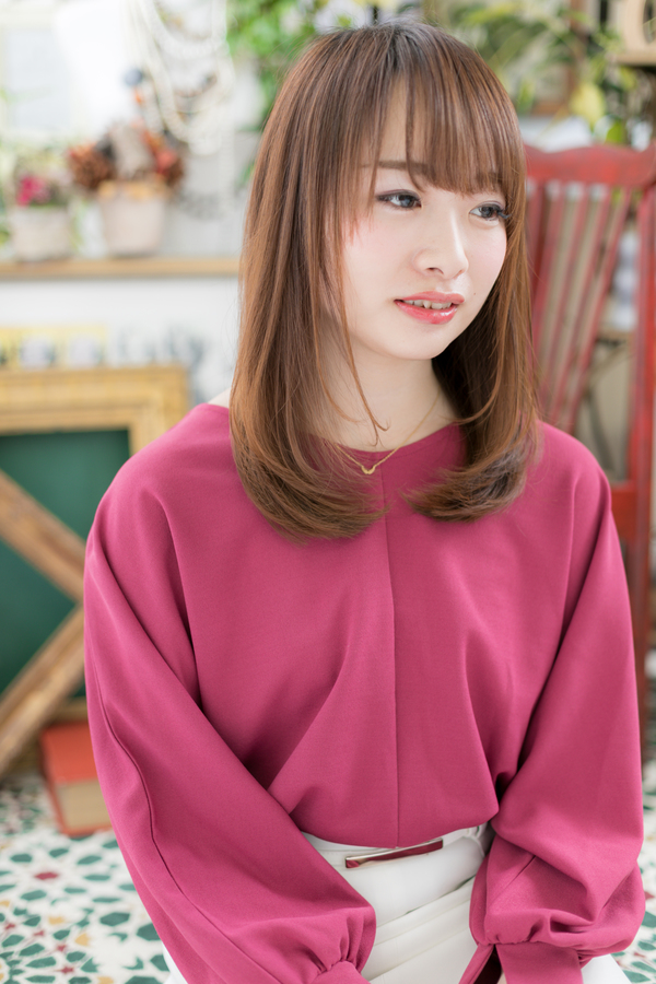 やわらかく仕上がるワンカールストレートヘアスタイル。表面の軽さでどんな髪質の方にも◎ナチュラルな髪型なのでオフィスや学校でも好感度大で大人女子のファション度UP。トリートメントしたようなカラーリングで髪の毛の悩みも解決!30代・40代にもおすすめ!