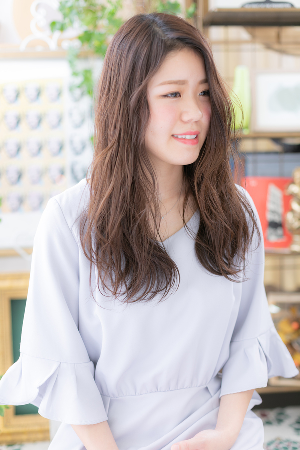 全体的なラフウェーブパーマで巻き髪過ぎないこなれ感を演出して大人女子のコーデを完成。くせ毛風ふわミディやくびれセミディからのヘアアレンジに◎髪の色は暗めのグラデーションやベージュもおすすめ!30代・40代にも◎(メイク担当:北浦和店 今野)