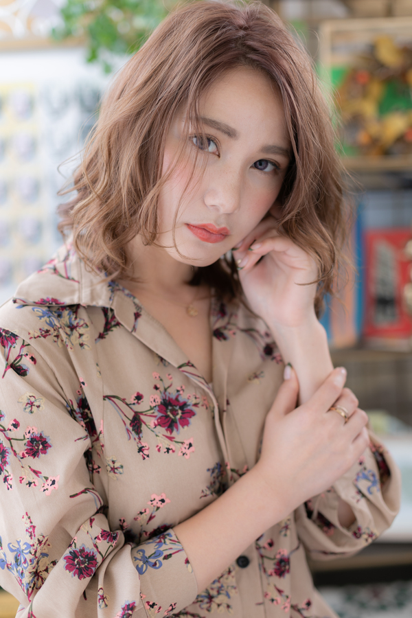バーム仕上げでウェーブにツヤ感をプラスし、ラフ感の中にきちんと感を出して大人女子のコーデを完成。センターパートやアシンメトリーなヘアアレンジもOK。ミディアムヘアを際立たせるグラデーションもおすすめ!30代・40代にも◎(メイク担当:北浦和店 棟方)