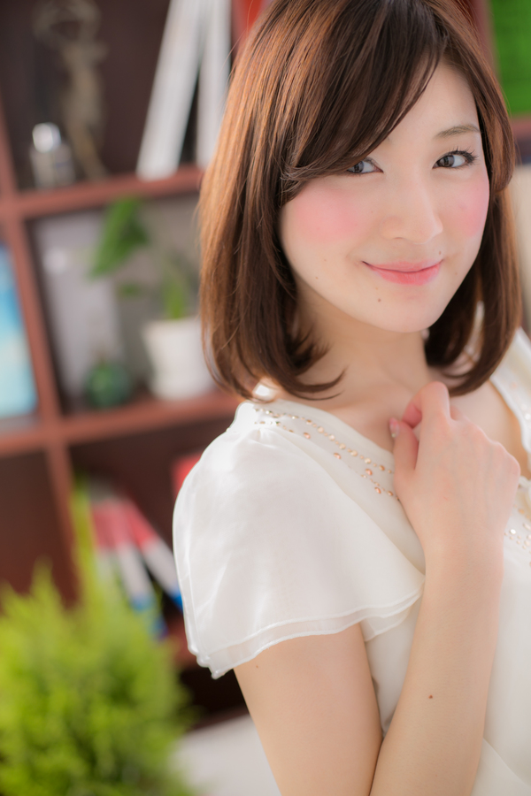肩のラインのさりげないワンカール、斜めバング、ツヤ感カラー…どこを切り取っても、フェミニンな優しさ溢れるナチュラルセミディ♪誰からも愛される上品レディスタイルです。ノーバングにしても可愛い☆
