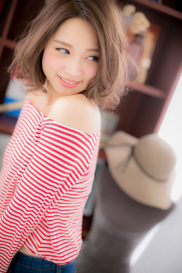 ドライ後ワックスをもみこむだけの簡単スタイリング。作り込まない無造作なエアリー感がポイントなので、手ぐしでくるんとカールさせるだけでOK!ふわミディスタイルには、斜めバングや厚めバングも相性◎。