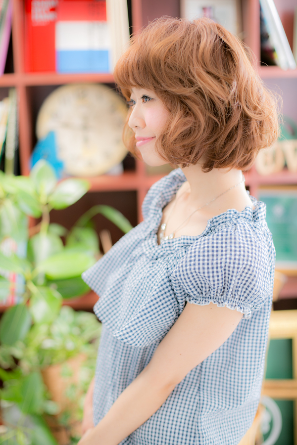 とことんガーリーでHAPPYオーラ全開のボブディスタイル。元気弾けるランダムカールが、外国人のクセ毛風でキュート!カラーも明るいオレンジベージュ系でフレッシュな雰囲気に☆