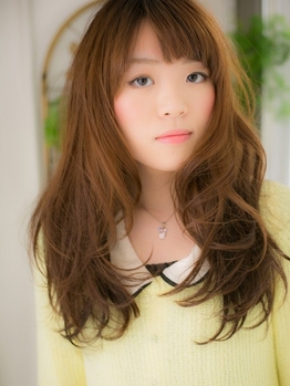 胸上のローレイヤーで重さを残して、ゆるめのパーマでランダムな動きを出したスタイル。重さを残したことと、トリートメントのケアで、しっかり艶感を出しているのがポイント!カラーはキャメルで、誰からも愛される好感度の高いスタイルに!