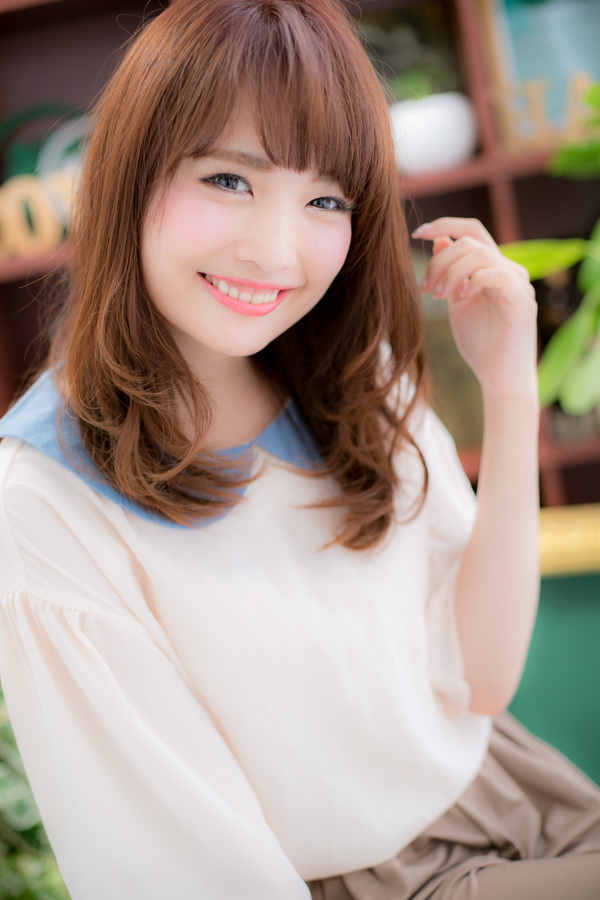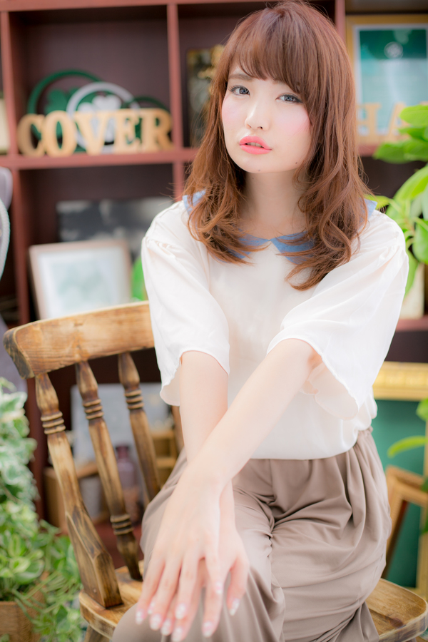 甘めテイストのフェミニンなゆるふわミディも、明るいトーンのツヤカラーで、ぐっと元気でポップな印象に。メンズウケがバッチリなだけでなく、同性からの支持も◎。オフィスでもデートでも女子会でも好感度大です。