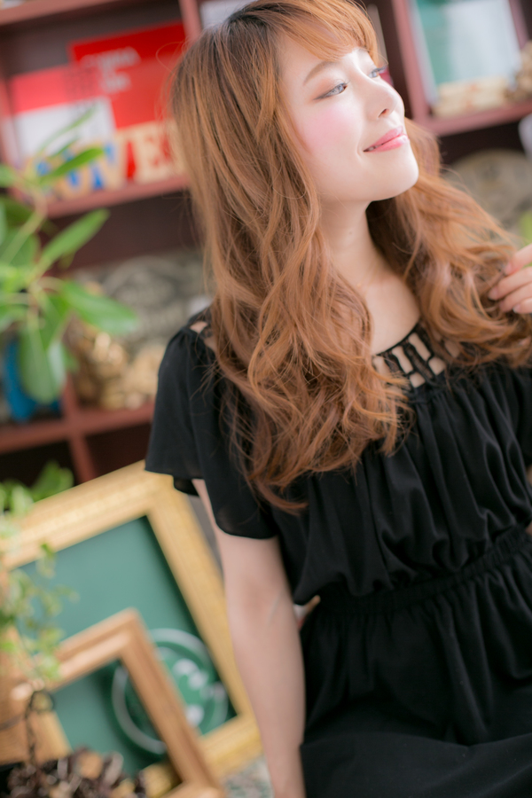 ゆるく大きめのウェーブが女っぽさをUPさせます♪前髪にもゆるくパーマがかかっているので、フェミニンな女性らしさがキラリ☆