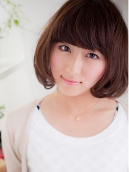 厚めに作った前髪は目力Up効果抜群!全体的に短めなボブにすることで、重たい印象にはならず、まとめ髪にしなくても、どんな服でもスッキリと着こなせる万能なスタイル!スタイリングが苦手な方や、扱いにくい髪質の方はパーマがオススメ!