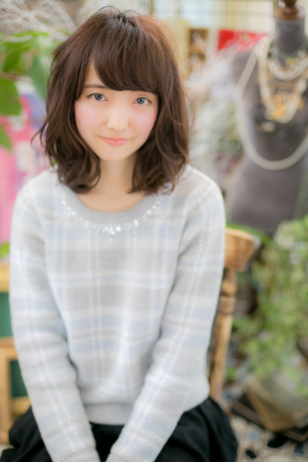 鎖骨下の長さに内巻きメインパーマで方上で揺れる女性らしい印象に。伸ばし中でハネてしまうのが悩みの方にオススメのスタイルです。