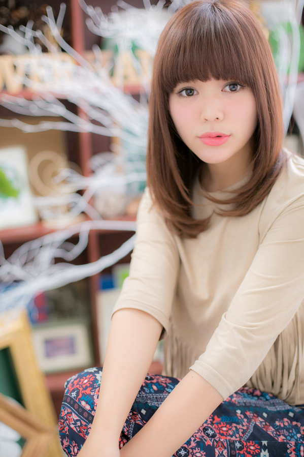 ピュアさと好感度の揃ったツヤが決め手のストレートセミディ。肌色キレイに見せるアッシュ系やベージュ系のカラーで透明感を☆