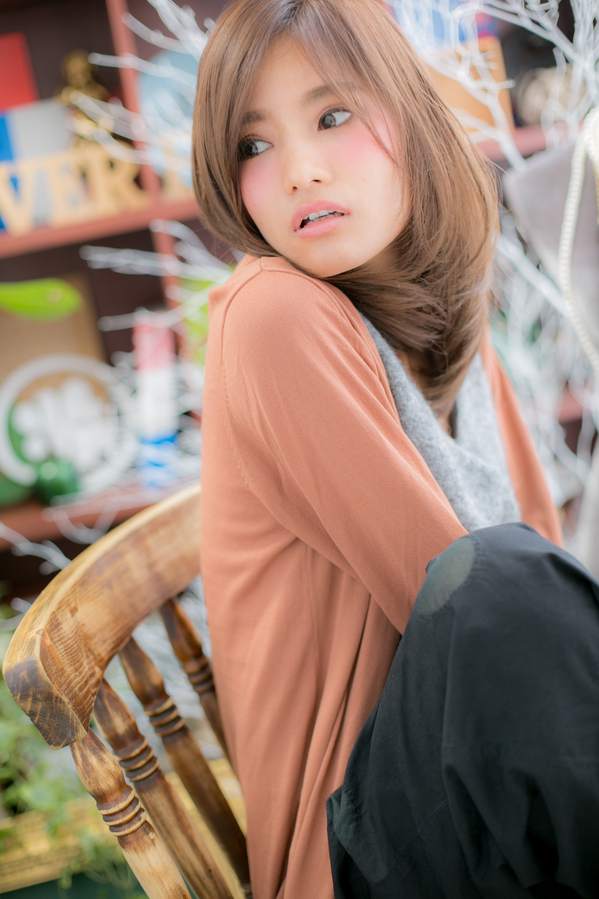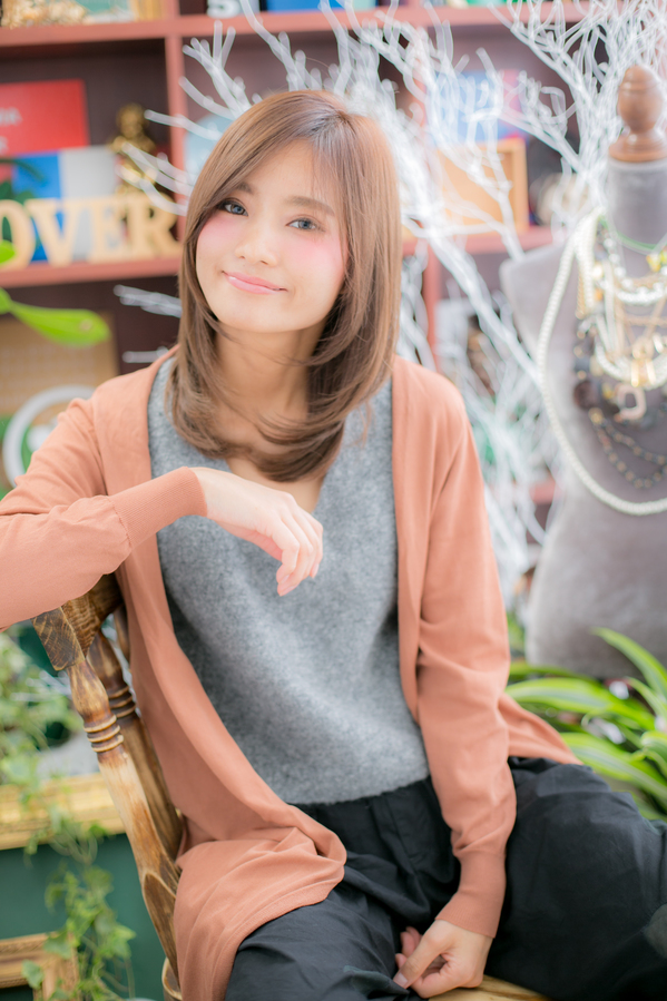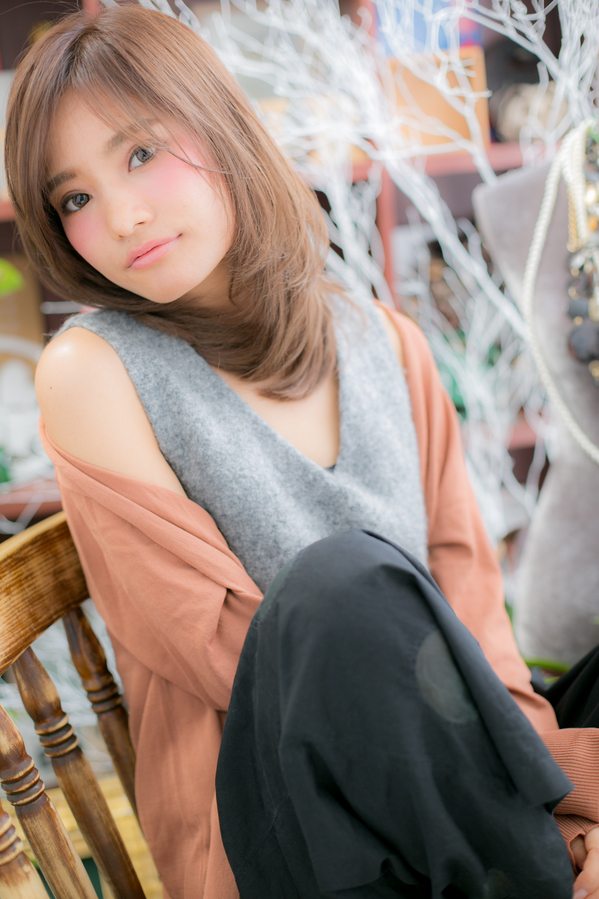 モテ度高いベージュ系カラーとさらさらセミディスタイルは失敗なし!ひし形の黄金バランスにプラス、フェイスラインもカバーできちゃう嬉しいポイントも。
